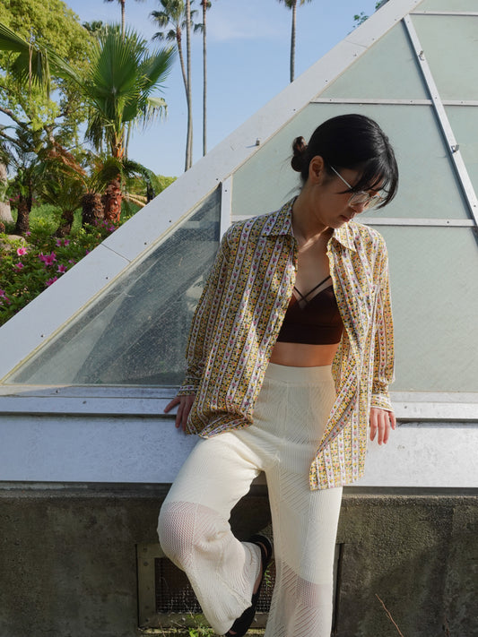 ブロックプリント ユニセックス ロングスリーブシャツ Tulip Trails
