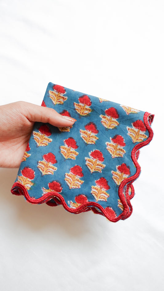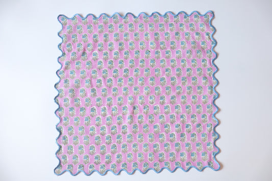 ブロックプリント ウェーブ刺繍ハンカチ Dahlia