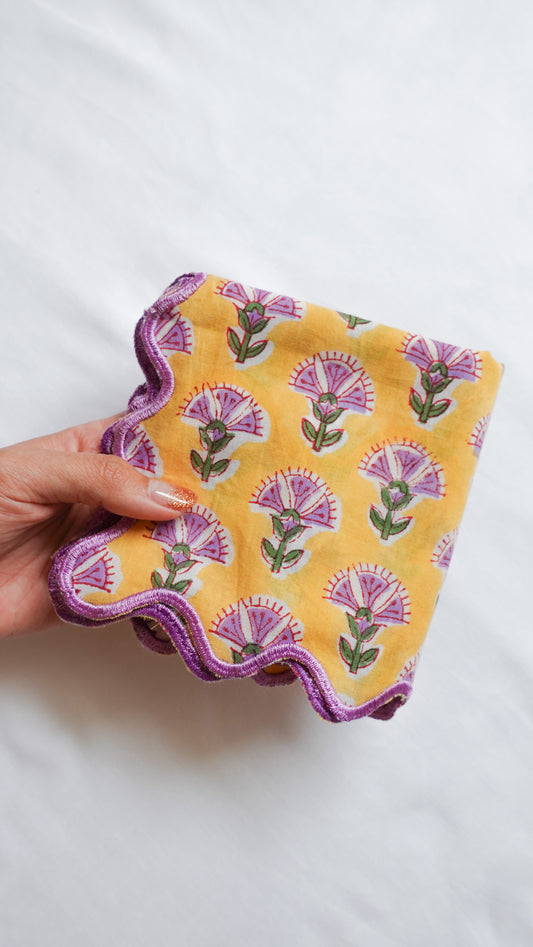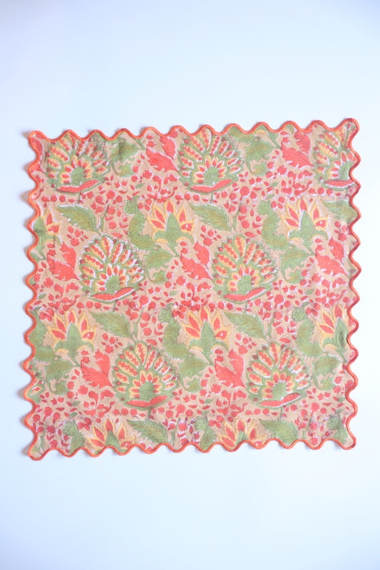 ブロックプリント ウェーブ刺繍ハンカチ Citrus