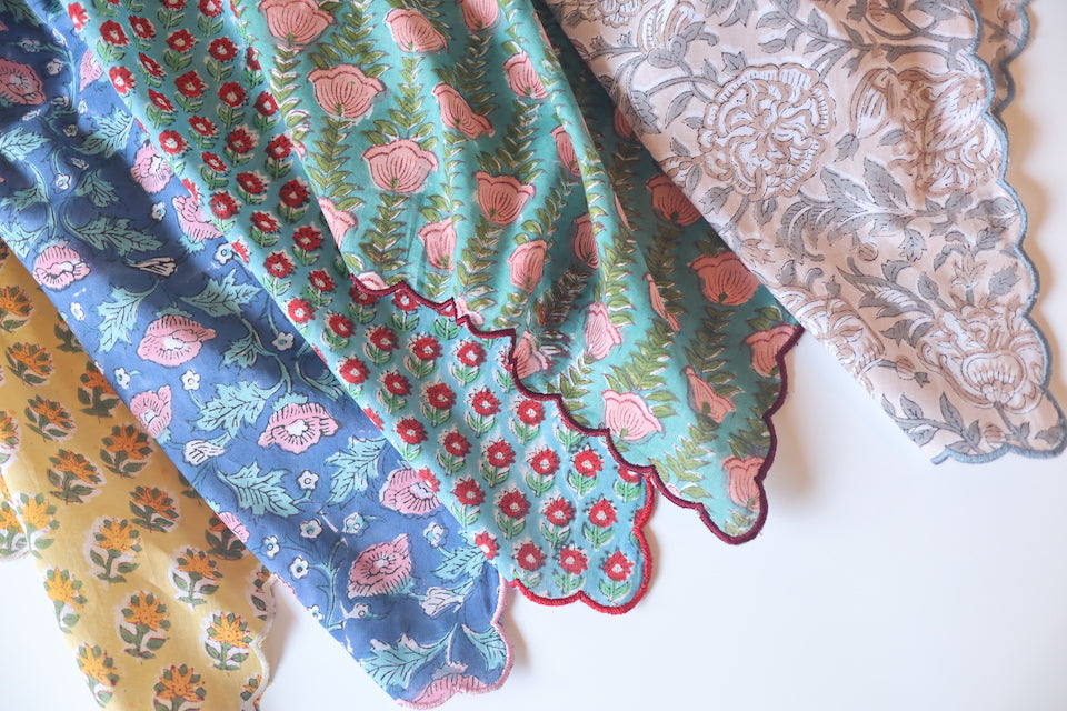 手作業で染められるハンドブロックプリント製品ですので、1点ごとに柄の出方が違うことがございます。