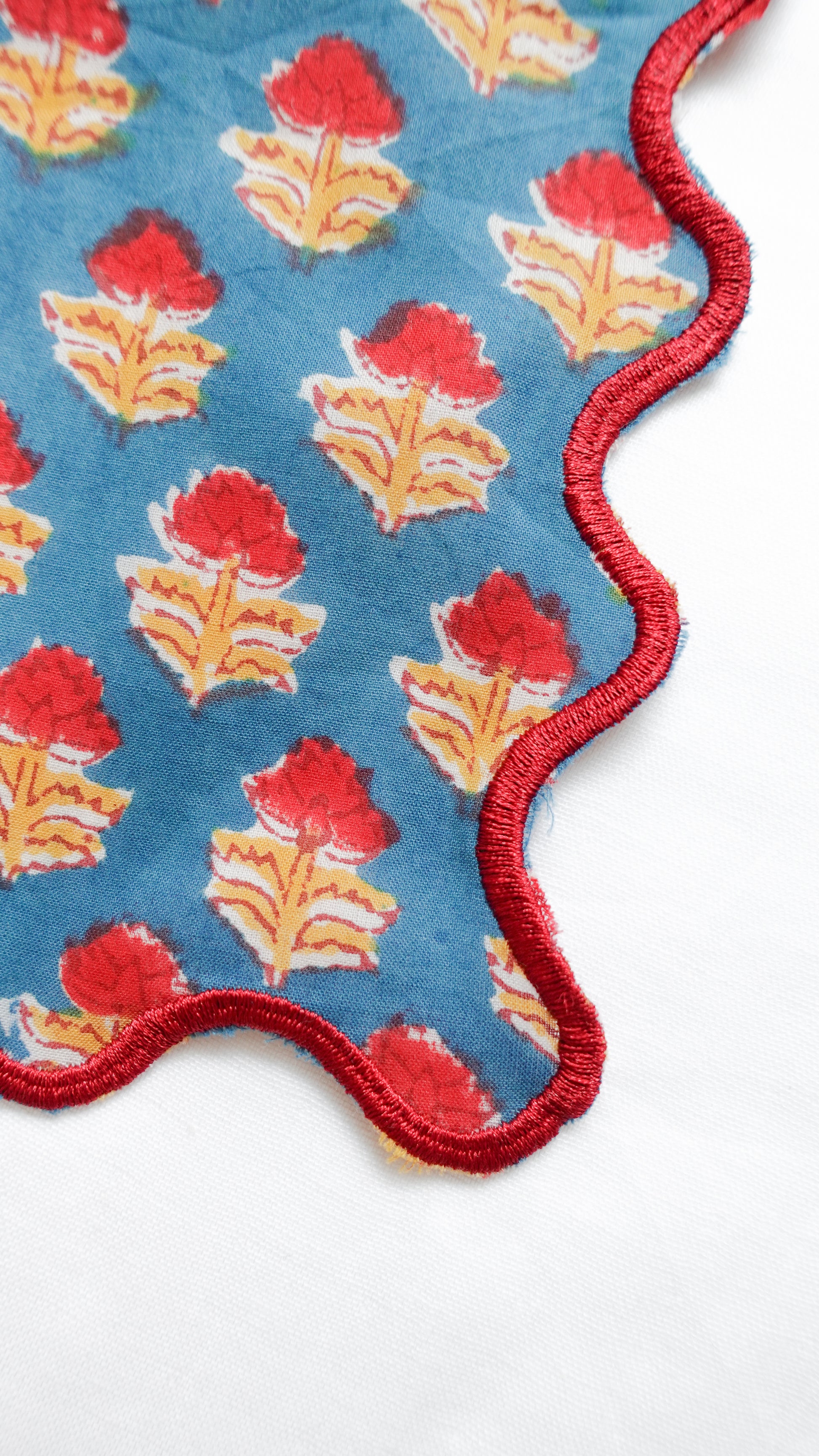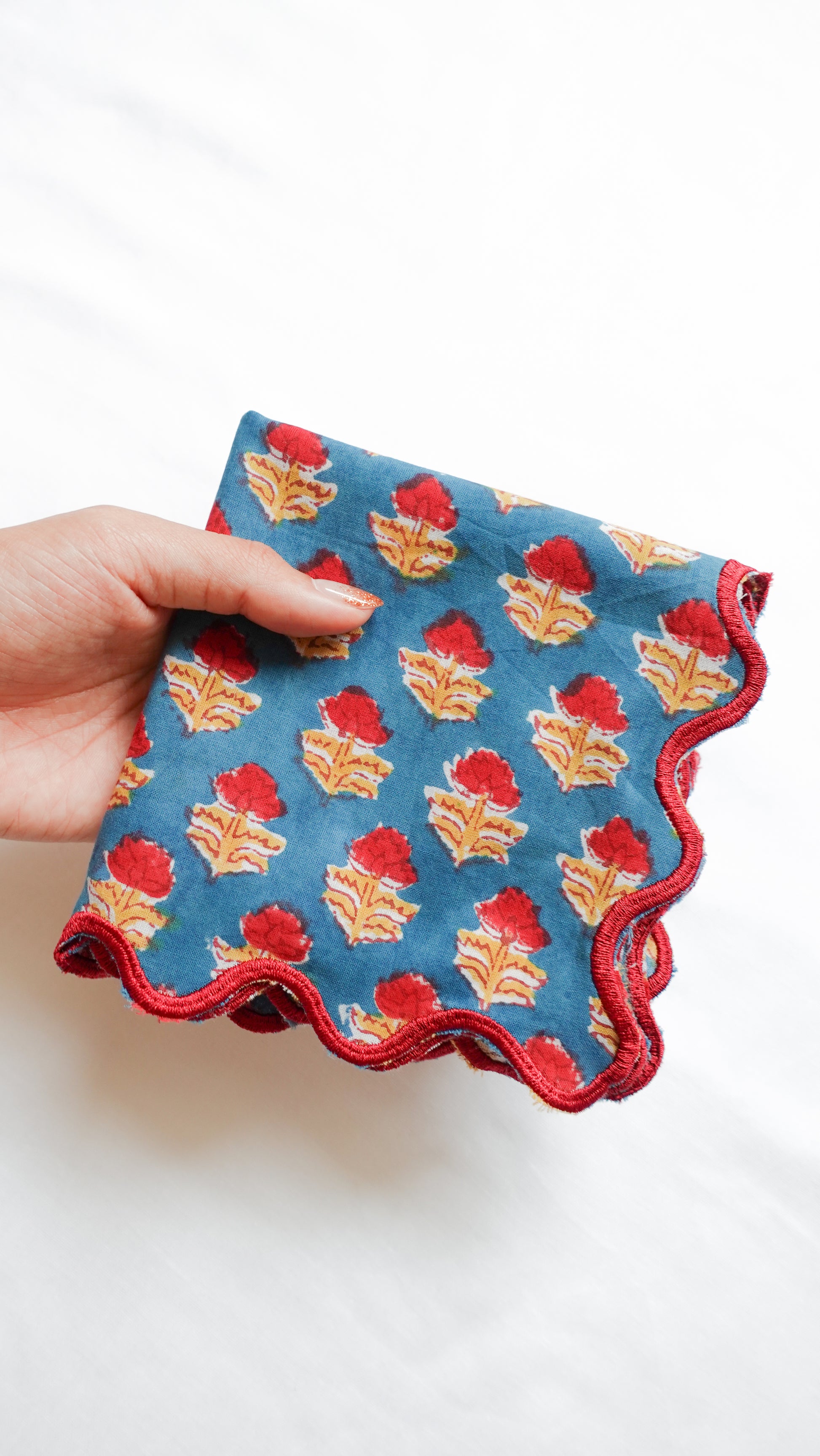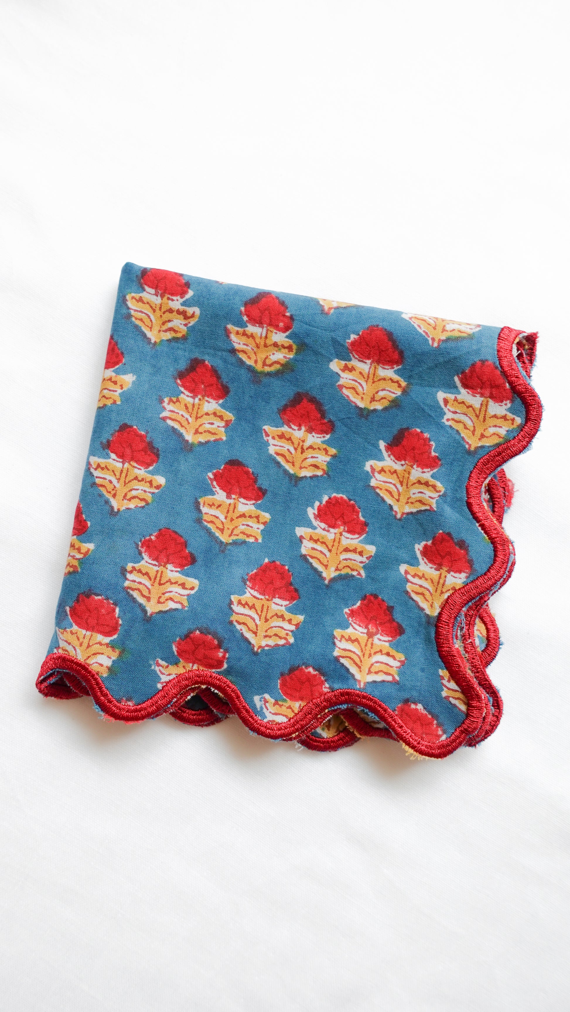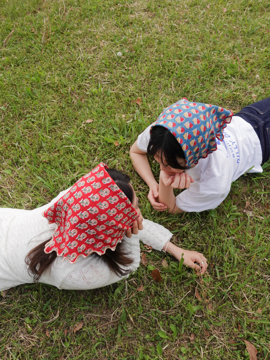ブロックプリント ウェーブ刺繍ハンカチ Dahlia