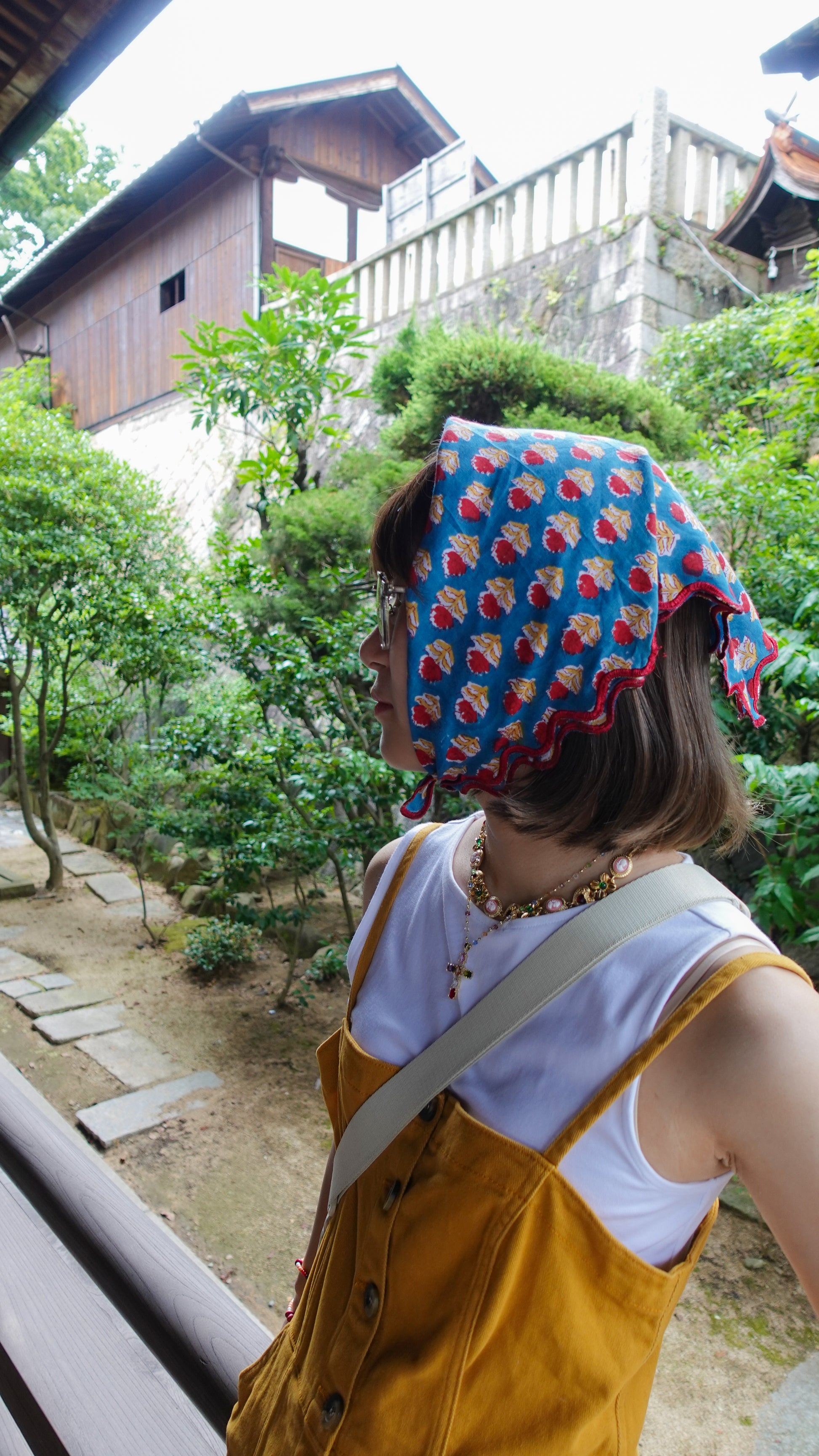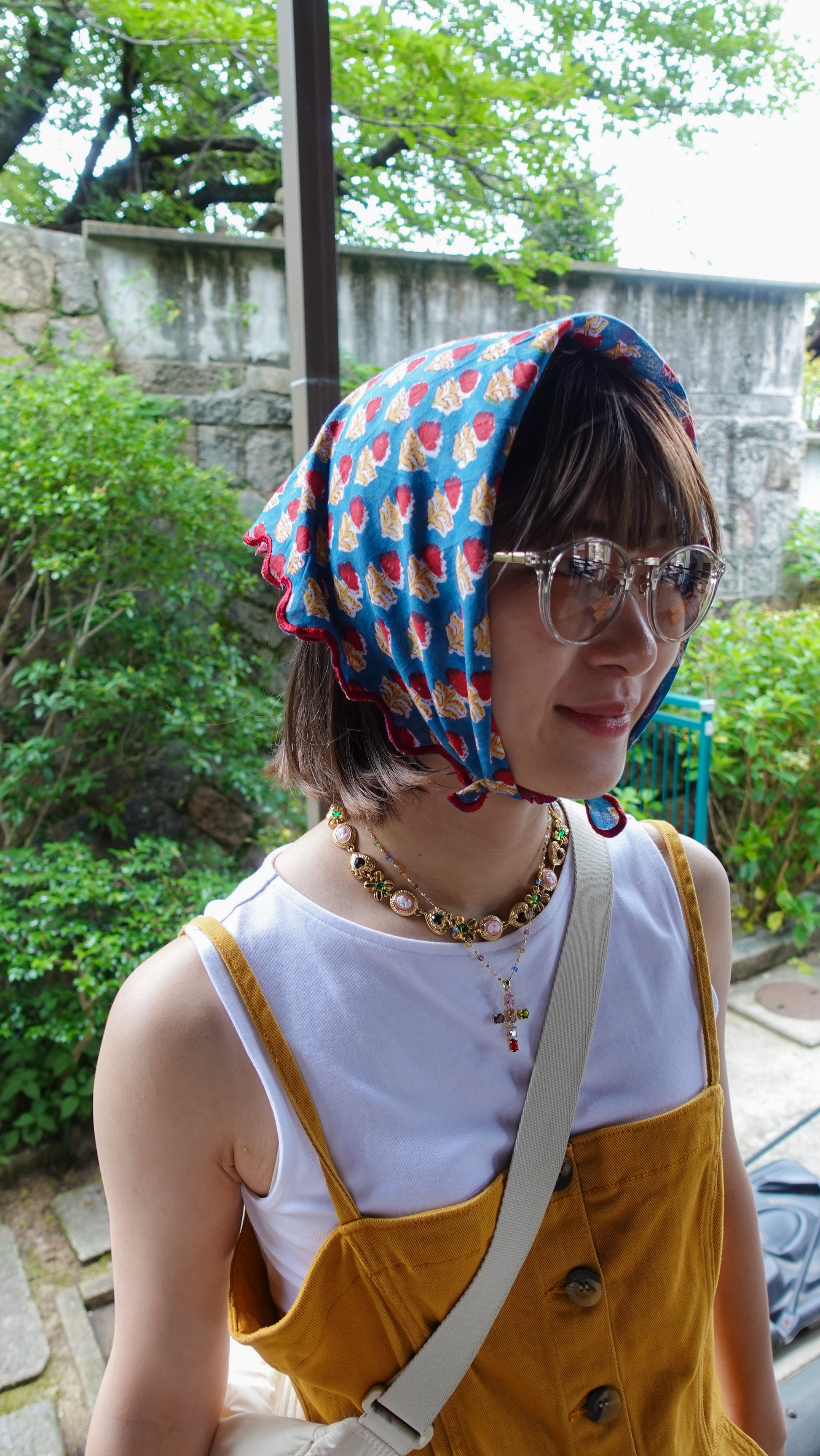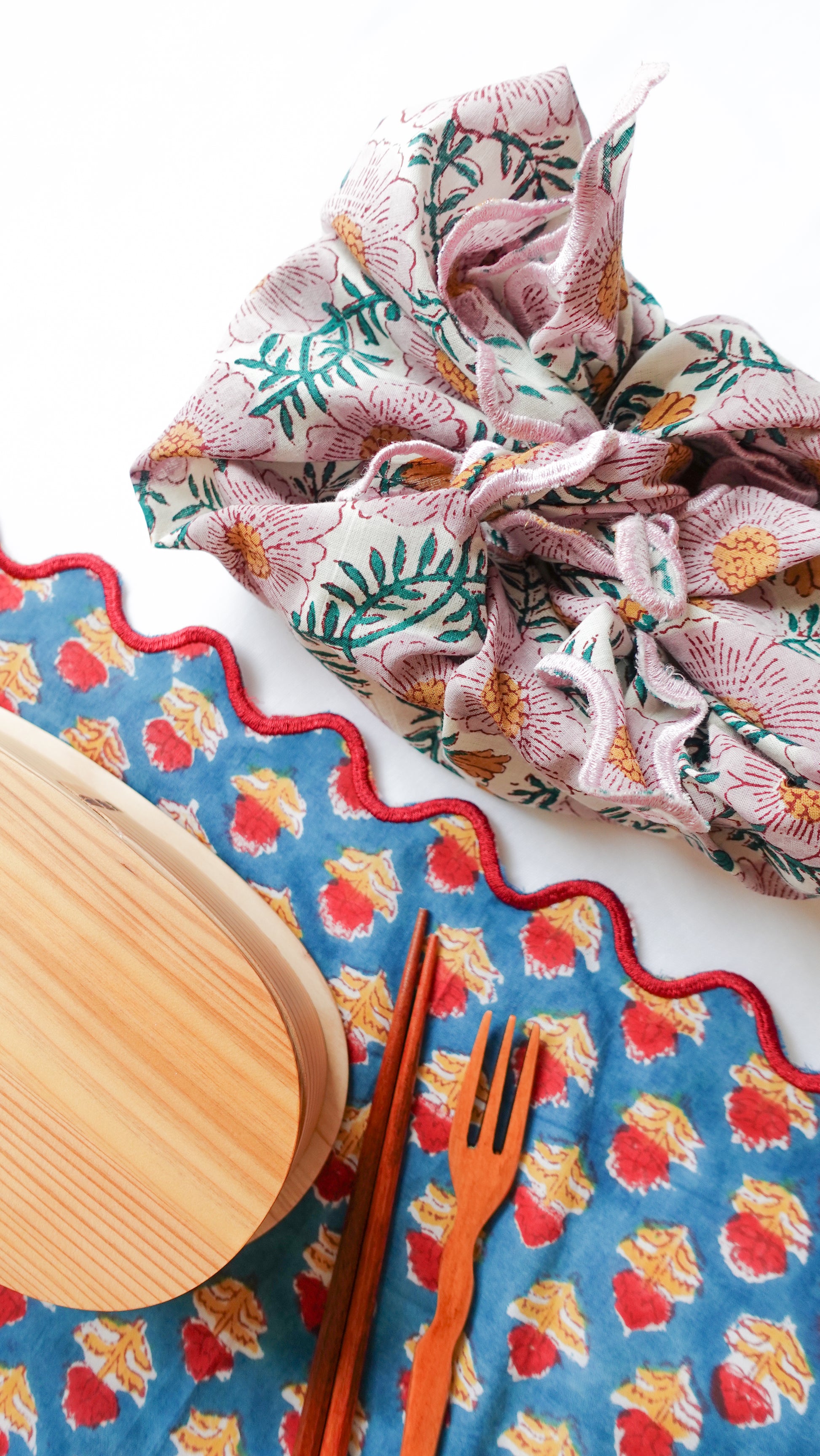 ブロックプリント ウェーブ刺繍ハンカチ Dahlia