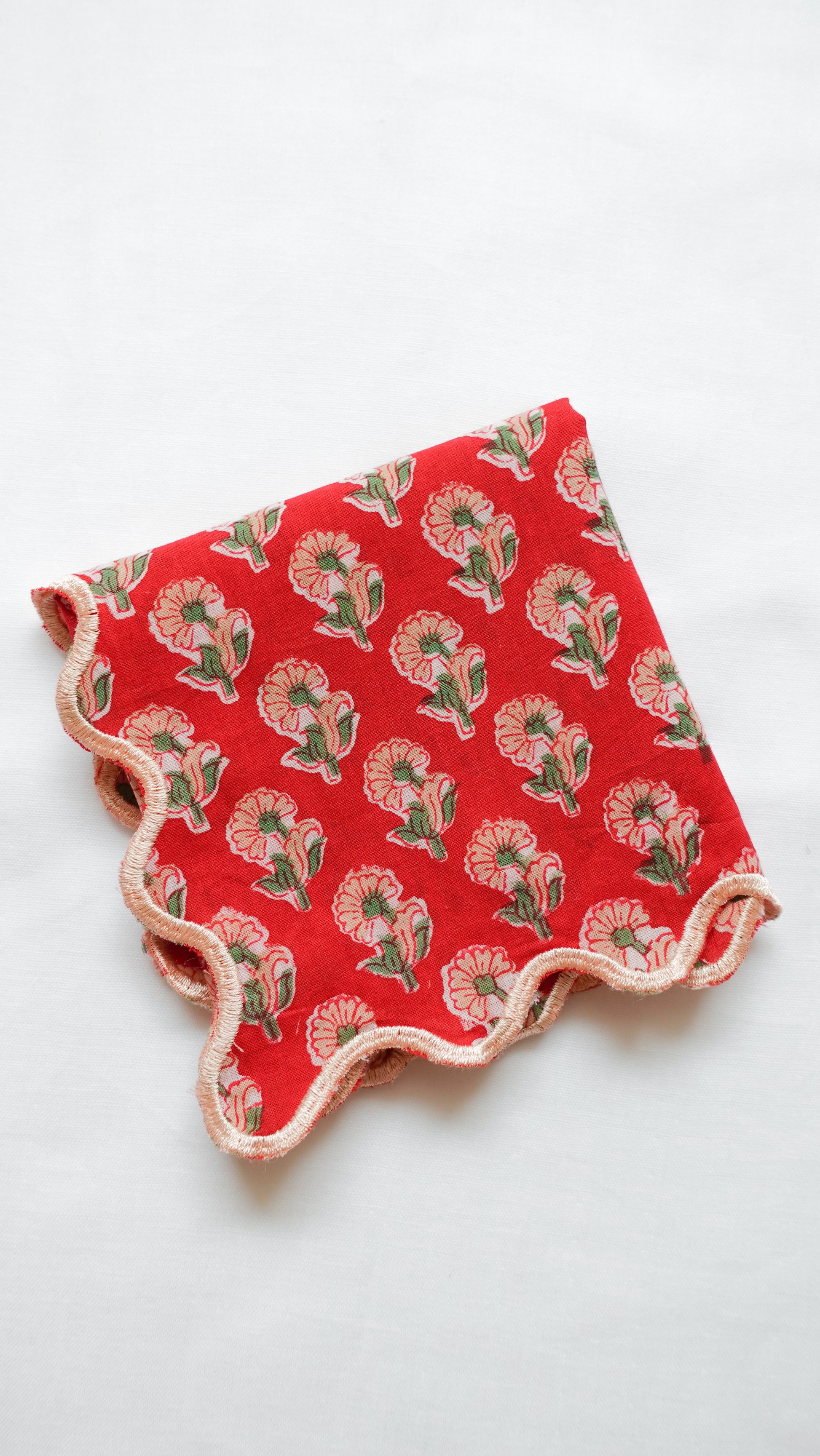 ブロックプリント ウェーブ刺繍ハンカチ Geranium